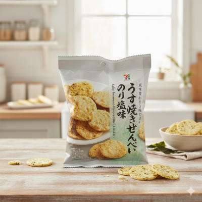 쌀의 풍미가 풍부한 바삭하고 얇은 구이 타입의 전병입니다.