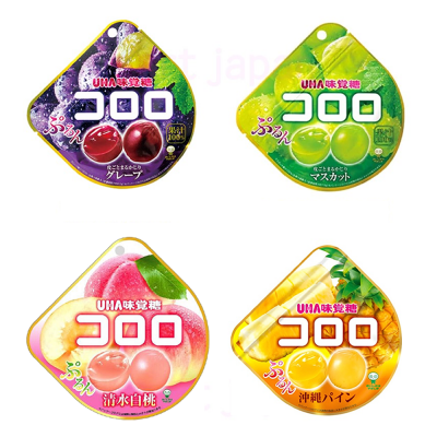 [UHA 코로로 젤리]는 새로운 식감의 톡톡 튀는 4가지 종류의 젤리입니다.